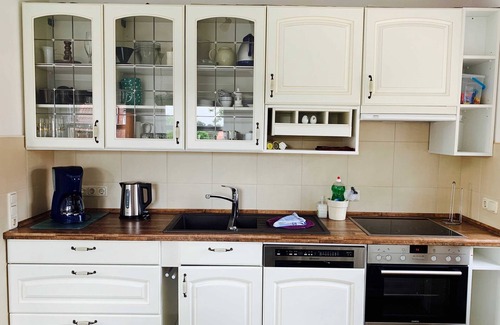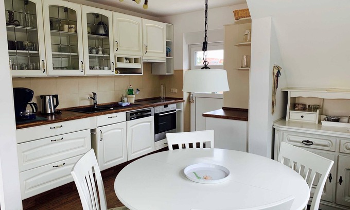 First floor apartment for 2-4 people with south loggia and second balcony for the evening sun 77 m2 living / dining area 28 m2 exquisite country kitchen 2 bedrooms with shower The apartment is bright and sunny and offers: tiled floor, vinyl floor, ceramic hob with oven, dishwasher, Refrigerator with freezer, microwave, toaster, kettle, coffee machine, satellite TV, flat screen, wireless Internet, stereo, vacuum cleaner, iron, clothes horse and much more ...