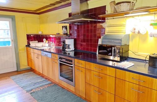 Food & DrinkTea/Coffee makerBathroomTowels, Additional bathroom, Toilet, Shower, Guest bathroom, Shampoo, Bathtub or shower, Body soap, Free toiletries, Slippers, Toilet paper, Private bathroom, HairdryerMedia & TechnologySatellite channels, TV, Radio, Mobile hotspot device, Flat-screen TVGeneralTrash cans, Private entrance, Iron, Hardwood or parquet floors, Heating, Smoke Alarm, Fire extinguisher, Key access, Ironing facilitiesKitchenKitchenware, Electric kettle, Refrigerator, Washing machine, Oven, Wine glasses, Dishwasher, Microwave, Stovetop, Coffee machine, Cleaning products, Kitchenette, Toaster, Dining tableOutdoorsBalcony, Terrace, Outdoor dining areaLiving AreaFireplace, Dining area, Sitting area, SofaViewGarden view, Quiet street view, View, Mountain viewBedroomLinens, Childrens' cribs, Wardrobe or closetAccessibilityUpper floors accessible by stairs onlyBuilding CharacteristicsPrivate apartment in buildingRoom AmenitiesDrying rack for clothing, Sofa bed, Fold-up bed, Clothes rack, Socket near the bed, Feather pillowEntertainment & Family ServicesBoard games/puzzlesCleanliness & disinfectionHand sanitizer |