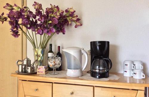 Media & TechnologyFlat-screen TV, Cable channels, Satellite channels, TVOutdoorsBalconyBathroomToilet paper, Towels, Shared bathroom, Shared toiletLiving AreaSitting areaGeneralSoundproof, Key access, Heating, Trash cans, Hardwood or parquet floorsKitchenElectric kettleViewGarden viewBedroomLinensAccessibilityUpper floors accessible by stairs onlyRoom AmenitiesClothes rack, Socket near the bed |