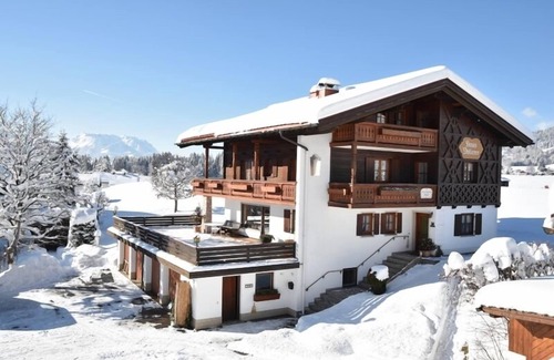 Unser persönlich geführtes Ferienhaus ist etwa fünf Gehminuten vom Ortszentrum entfernt und beeindruckt mit herrlichem freien Blick über weite Wiesen auf das Kaisergebirge. In ruhiger sonniger Lage zwischen den Bayrischen und Tiroler Alpen bietet es dem Gast alle Annehmlichkeiten, die er sich für die schönsten Wochen des Jahres wünscht. Wenn Sie eine Ferienwohnung in Reit im Winkl im Chiemgau mit gemütlicher, heimeliger Atmosphäre suchen und einen herrlichen Bergblick zu schätzen wissen, werden Sie sich in unserem gepflegten Gästehaus wohl fühlen. Wärmen Sie sich zudem am wohligen Kachelofen in Ihrer Zweiraumwohnung und genießen Sie das traumhafte Bergpanorama. In unserer kleinen Wellness Oase können Sie nach einem anstrengenden Tag in der Physiotherm Infrarotkabine mit Farblicht, Aroma- und Klangbad gesund entspannen. Bademäntel werden auf Wunsch kostenlos zur Verfügung gestellt. Die Gastgeberin ist ausgebildete Kräuterpädagogin, sowie Natur- und Landschaftsführerin und nimmt Sie gerne auf eine ihrer spannenden und lehrreichen Kräuterwanderungen in und um Reit im Winkl mit. Wir leben und lieben die Natur mir ihrer Vielfalt, das heimische Brauchtum, die bayrische Tradition mit ihrer Musik und ihrem Gesang - einfach ?bayrisch gmiatlich?. Hinter dem Haus haben Langlauffreunde den direkten Zugang zum bestens gepflegten Loipennetz sowie zu den Spazier- und Wanderwegen. In der Nähe des Hauses befindet sich die Bushaltestelle für Ausflugsfahrten sowie für den kostenlosen Shuttle-Bus zur Talstation der 8er-Gondelbahn in Seegatterl.Ihr Vorteil als unser Gast: Wir sind Partner-Vermieter/Betrieb der Reit im Winkl Schwimm-Card. Sie haben dadurch die Möglichkeit, zusätzlich zu unseren eigenen Leistungen weitere kostenlose Leistungen zu erhalten, wie z.B. freien Eintritt im Frei- und Hallenbad, im Kössener Wald-Freibad sowie am Walchsee. Beachten Sie bitte auch unsere aktuellen Hinweise und Angebote auf unserer Website oder Sie rufen uns einfach an. Wir freuen uns, Sie bald als unsere Gäste begrüßen zu dürfen, Ihre Familie Döllerer.