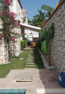 Havuzlu taş villa 2 offers accommodations in Çeşme, a 16-minute walk from Şifne Beach and 1.9 miles from Erythrai Antique City. Both free Wifi and parking on-site are accessible at the villa free of charge. Cesme Castle is 8.7 miles away and Cesme Marina is 9 miles from the villa. Offering direct access to a terrace with garden views, the spacious air-conditioned villa consists of 3 bedrooms. A flat-screen TV is available. The accommodation has a fireplace. If you'd prefer to not eat out, you can make use of the kitchen facilities. Cesme Anfi Theatre is 8.5 miles from Havuzlu taş villa 2, while Cesme Bus Terminal is 11 miles from the property.