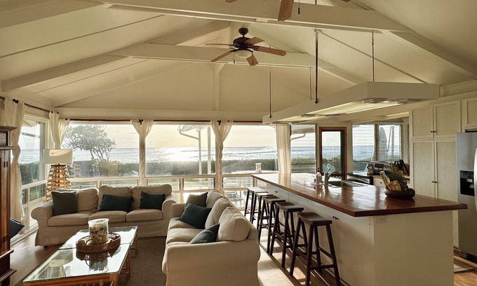 This home is excellent for continuous views of sunsets and sunrises and during the winter months, watch and enjoy world class surfing just off shore all from the outdoor lanai. As an adventure for the children: certain times of the year may bring less sand to the beach allowing small tide pools and the chance to discover small fish and other marine life. Take a break from the hotel routine by reserving this breathtaking beachfront home.