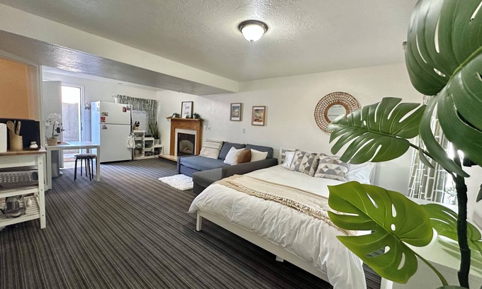 Make some memories at this unique and family-friendly place. Quaint and cozy basement studio with living room/kitchen and full bath with a jacuzzi tub. Located in the south part of Provo, ten minutes away from BYU Provo and twenty minutes away from UVU. Enjoy amenities like WiFi, AC, and heating during your stay. Book now and enjoy everything this quaint house has to offer.