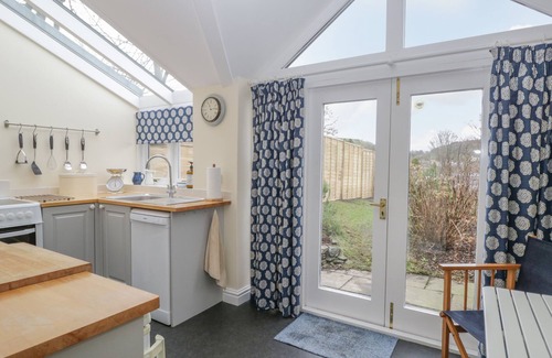Amenities: Electric central heating with woodburning stove. Electric oven and hob, microwave, fridge, dishwasher, TV with Freeview, DVD, WiFi. Fuel, power and starter pack for stove inc. in rent. Bed linen and towels inc. in rent. Travel cot on request. Roadside parking in side street next to cottage with one parking permit provided. Enclosed lawned garden with patio and BBQ. One well-behaved dog welcome. Sorry, no smoking. Shops and pubs 2 mins walk. Please Note: No children except babes-in-arms. Please Note: This property only accepts bookings starting on Fridays or Mondays.