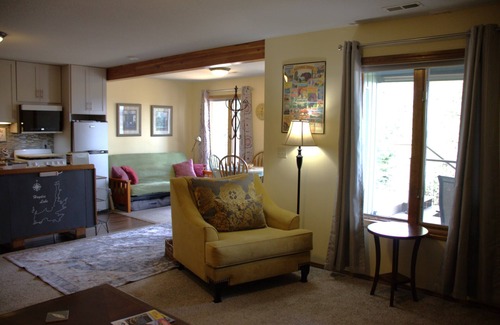 Step through the charming cottage garden and be welcomed by breathtaking views of the mountains, prairie, and Hayden Lake—visible from your private deck and throughout every room of your 800 sq. ft. apartment. This cozy retreat features a private bath and kitchenette, thoughtfully stocked with all the essentials for your convenience.