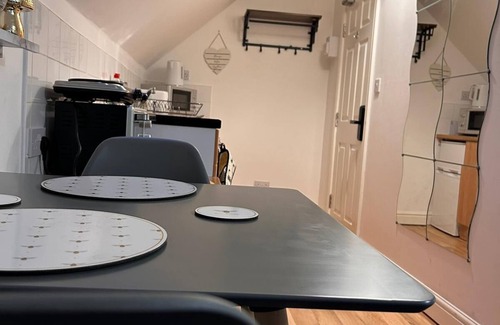 This stylish clean 1-bed/1-bath Ensuite Room, conveniently located 1.8 mile less than 7 mins away from the town centre, and able to sleep 2 guests comfortable. There is a double bed and mattress with a small table and chair.
