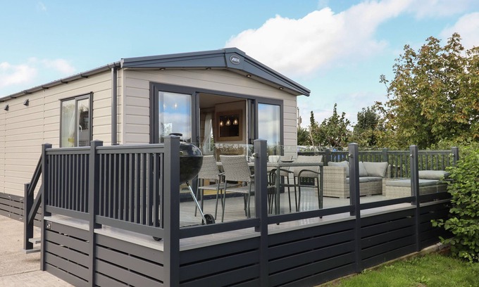 Amenities: Gas central heating. Electric double oven, gas hob, microwave, fridge/freezer, washing machine, dishwasher. Wifi. Fuel and power inc. in rent. Bed linen and towels inc. in rent. Travel cot and highchair available on request. Off-road parking for 2 cars. Enclosed, wrap-around decked area with furniture. One well-behaved pet is welcome at a charge of £25 per week. Sorry, no smoking. Shop and fishing lake on-site, pub 1.6 miles. Note: There is a shared outdoor heated swimming pool open 8am-8pm, May-Sept. Note: Children must be supervised at all times as this is a working farm. Note: There is a dedicated electric vehicle charging station on site which is payable at reception. Note: Only Saturday arrivals accepted between 19th July to 30th August.