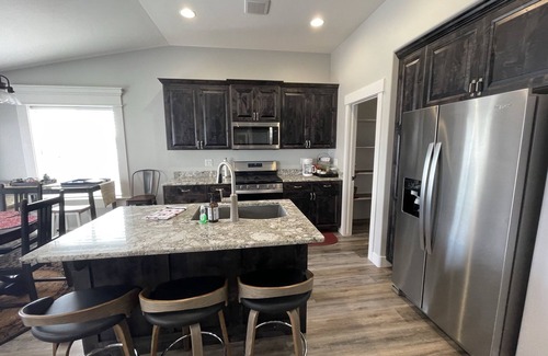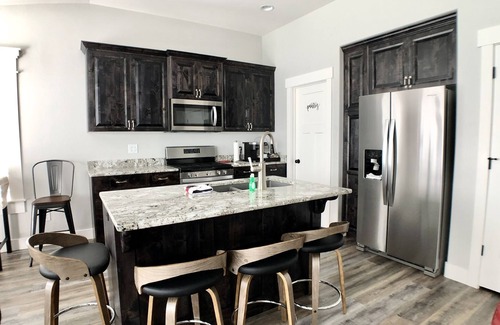 New neighborhood and fully fenced yard. Many extra amenities have been included truly helping you feel like you’re at home. Many spaces to spread out as a family or gather to play games. Kids room has double bunks, games, and books included. Idaho Falls is: