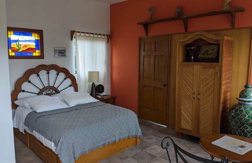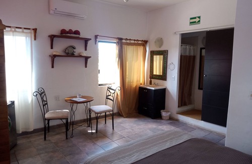 With great views to the Sea of Cortez, and centrally located in the East Cape of Baja California Sur, the Hacienda de Palmas is a boutique style bed and breakfast in the small town of La Ribera, Baja California Sur Mexico. Whether you are here for the great fishing and recreation, or just need a place to call home while visiting friends and family, the Hacienda de Palmas is ready for all your accommodation needs. The Hacienda de Palmas can accommodate larger groups, and the garden patio area is a great place to have special gatherings and stage events.