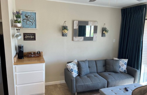 Newly remodeled and beautiful, our Condo is located on the North Beach of Corpus Christi. Very convenient (couple of minutes) to Texas State Aquarium, Hurricane Harbor Waterpark, and USS Lexington.