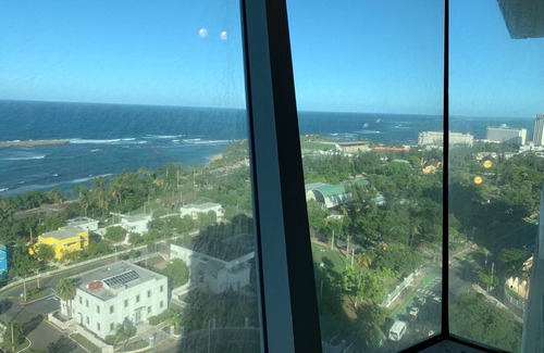 This studio apartment is in the heart of San Juan. Perfect for 2 people. It has spectacular ocean views from everywhere in the condo with floor to ceiling glass throughout the entire apartment. It makes you feel you are on the ocean. Located in the Heart of San Juan, next to Old San Juan and Condado. This Studio has a fully equipped kitchen and washer and dryer. 24-hour lobby concierge. This condo includes one free parking space under the building.
