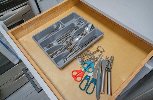 🍳 Fully stocked kitchen with cookware and silverware for home-style meals