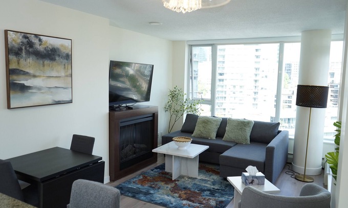 Welcome to your stylish urban getaway in the heart of downtown Vancouver! This modern 1-bedroom, 1-den condo offers the perfect blend of comfort, convenience, and location—ideal for both business and leisure guests. You’ll be just steps away from Rogers Arena & BC Place – Catch concerts, Canucks games and events, Costco – Perfect for longer stays, SkyTrain Station – Easy access to the airport and the rest of the city, Plus, you’re a short stroll to Gastown, Yaletown, and Robson Street shopping.