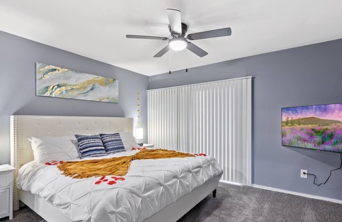 Why not take the comfort level up a notch and slip into the cozy ambience of the living room, complete with a cushy sofa, a fuzzy carpet and an enormous 55-inch 4K HDTV! All your favorite streaming services including HBO Max, Netflix, Disney +, Amazon Prime and more are available for your entertainment. Need some quality rest and relaxation? No problem! Each bedroom has abundant space for you to store your belongings, as well as a comfortable King/Queen-sized mattress with hotel-quality linens & pillows designed for maximum comfort. Additionally, benefit from using our bedside nightstand complete with a reading lamp to facilitate an ideal reading set up. After a day of adventure, wash off in a nice bubbly bath or hot shower in one our sparkling bathroom, fully equipped with towels and toiletries for your convenience.