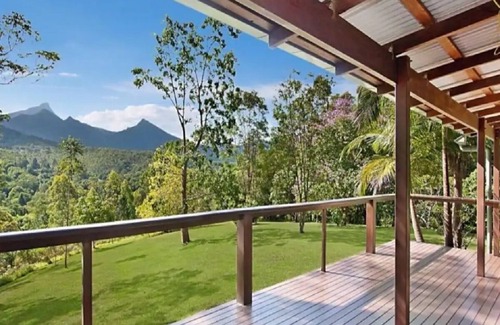 Enjoy quality time with friends and family in a nature-drenched oasis, whilst enjoying everything this unique region has to offer. This spectacular retreat-style house boasts epic sunset views of Wollumbin and is surrounded by 7 acres of forested hills; let the magic of nature restore and uplift you! Located only 2km from the quirky township of Uki, and 40min from Gold Coast airport, 50mins to Byron Bay, it is both peaceful and convenient, however you might not want to leave this sanctuary!