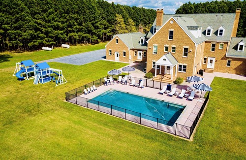 Heated Pool- CHESAPEAKE MANSION - 12,000 SQFT/30 ACRES/HUGE POLYWOOD PLAYGROUND has 8 Bedrooms , 9 Bathrooms, and max occupancy of 12 people. The minimum rental for this property is 1 nights, but this can change depending on the season you plan on staying. Previous guests have given good rated it, and VRBO labeled it a top-rated House because of the excellent services rendered by the owner or manager of this House, and has consistently provided great experiences for their guests. Most families or guests that use it recommend it to their friends and some of them are repeat guests. House has a friendly neighborhood, and the Sherwood has interesting places to visit. If you want to learn more about the House in Sherwood, such as places to visit and things to do nearby, you can check below to learn more.