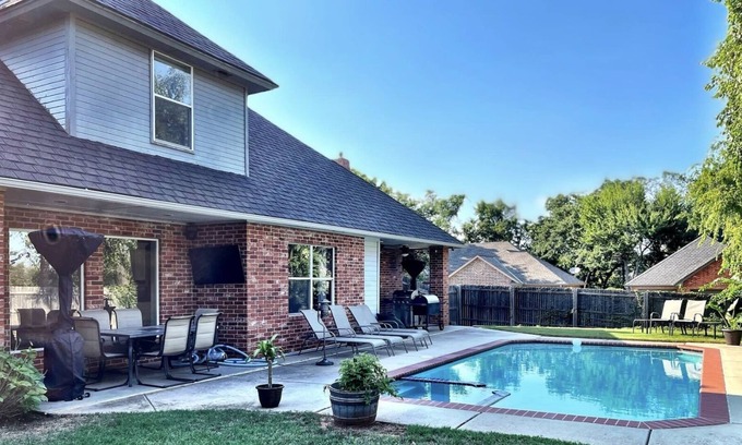 Heated pool near CowboyHF/WCWS/Bricktown is located in Oklahoma City. Heated pool near CowboyHF/WCWS/Bricktown provides accommodation, featuring TV, Private Pool, Bedding/Linens, among other amenities. This House features TV, Private Pool, Bedding/Linens, to make your stay a comfortable one.