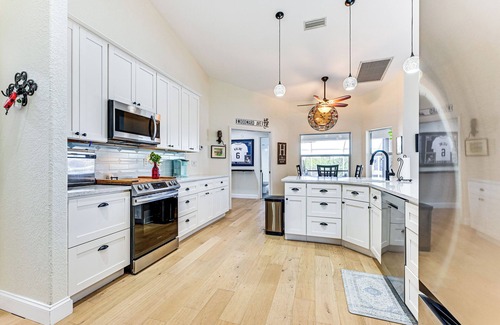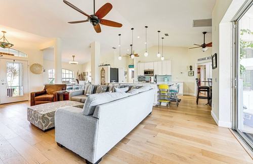 Trade in city life for a stay at this breezy Port Charlotte vacation rental. Located steps from your own private dock on the canal, this 2-bedroom, 2-bathroom home makes the perfect place to maximize your time in the Florida sunshine. Start the day casting a line while sipping your coffee, then visit one of many local beaches or golf courses. Freshen up with a dip in the pool before grilling out as the sun sinks lower over the water.