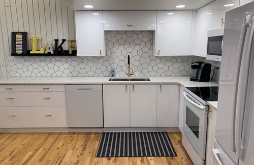 This 2 bedroom 1 bath 800 sq ft townhouse features all amenities including Wifi, all brand new appliances including fridge with filtered water and ice, dishwasher, microwave, full size laundry, air conditioning, Keurig coffee machine, 55” 4K cable TV with Netflix and PS4.