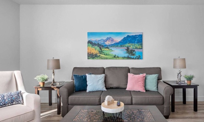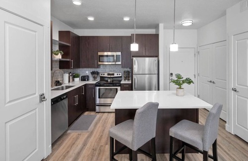 Relax in this cozy 1-bedroom apartment with mountain and Orem Temple views. Perfect for up to 4 guests, it offers a king bed, full bath, walk-in closet, fully stocked kitchen, washer/dryer, high-speed Wi-Fi, and luxury linens. Enjoy amenities like a 24-hour gym, bowling alley, pool (June-Sept), and year-round hot tub. Minutes from BYU, UVU, Provo Airport, Top Golf, theaters, and Utah Lake. Perfect for business travelers, families, and college sports fans!