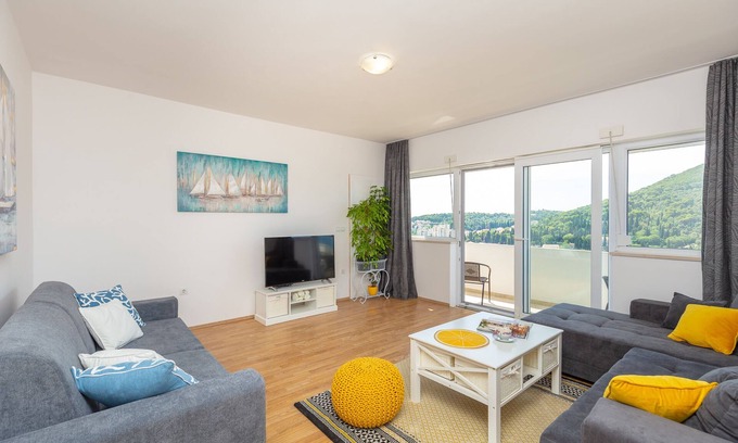 This is a lovely and comfortable 2-bedroom apartment with a balcony offering a remarkable view over the entire Lapad bay. Free private parking is available in front of the property.