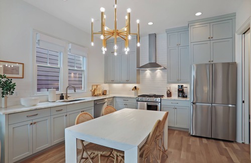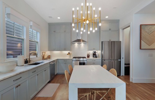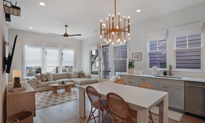 Our other standard amenities really put life in a cramped, cookie-cutter hotel room to shame: you'll have a full kitchen, laundry, fast WiFi, a smart TV, and total privacy for your stay. Our homes all feature Ring doorbell cameras and custom-coded keyless entries, so you can rest easy knowing your security is top notch. You won't be shelling out big bucks each day to park in a twisty multi-story deck either, as all of our properties have free off- or on-street parking.