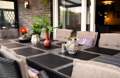 HeideFunHaus 2 is a recently renovated vacation home in Neuenkirchen where guests can make the most of the garden and barbecue facilities. This property offers a private pool, free Wifi, and free private parking. Outdoor seating is also available at the vacation home. Featuring a terrace and pool views, the spacious vacation home includes 4 bedrooms, a living room, satellite flat-screen TV, an equipped kitchen, and 2 bathrooms with a bath and a shower. Towels and bed linen are available in the vacation home. For added privacy, the accommodation has a private entrance and soundproofing. You can play table tennis at HeideFunHaus 2. Heide Park Resort is 8.2 miles from the accommodation, while Bird Parc Walsrode is 14 miles from the property. Hannover Airport is 44 miles away.