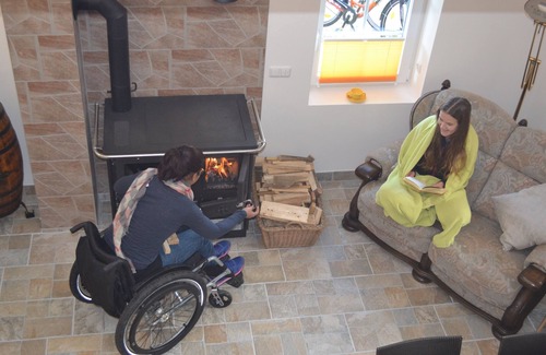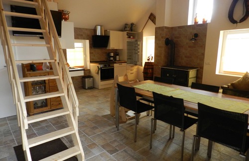 Our Heidihaus, a small jewel, with much love and very elaborately renovated and perfectly adapted to today's requirements. Our Heidihaus has 2 levels and covers about 68sqm. On the ground floor it is fully furnished for wheelchairs. The wet cell with toilet, washbasin and shower is optimized as well as the modern kitchen with oven, hob, dishwasher and mixed refrigerator. There is also a beautiful wood-burning stove on which you can also cook. Its name is called Heidihaus because of its second level, which is especially accessible to the kiddies only via a ladder and is illuminated over the small window of the sun and the moon.