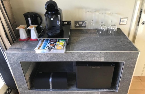 Food & DrinkTea/Coffee maker, Bottle of water, Chocolate/CookiesBathroomShower, Hair Dryer, Free toiletries, Toilet, Private Bathroom, Bathtub or shower, Towels, Toilet paper, Walk-in shower, Body soapMedia/TechnologyTV, Radio, Video games, Satellite channels, Cable channels, Flat-screen TV, Game console, Streaming service (like Netflix)GeneralClothing Iron, Ironing facilities, Fan, Heating, Private entrance, Soundproof, Hardwood or parquet floors, Hypoallergenic, Trash cans, Smoke Alarm, Fire extinguisher, Key accessKitchenRefrigerator, Electric kettle, Cleaning products, Coffee machine, Dining table, Wine glassesLiving AreaDesk, Sitting area, Sofa, Dining areaViewView, Garden view, Inner courtyard viewBedroomWardrobe or closet, LinensAccessibilityEntire property on ground floor, Entire unit wheelchair accessible, Roll-in showerInternetGame console - Xbox OneRoom AmenitiesSocket near the bed, Feather pillow, Non-feather pillowCleanliness & disinfectionHand sanitizer |
