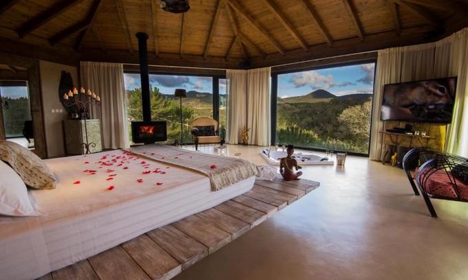 Food & DrinkMinibar, Tea/Coffee maker, Wine/ChampagneBathroomSlippers, Bidet, Body soap, Hairdryer, Bathrobe, Shower, Free toiletries, Bathtub, Towels, Toilet paper, Toilet, Private bathroom, Shampoo, Spa tubMedia & TechnologyFlat-screen TV, TVGeneralHeating, Private entrance, Air conditioning, Key access, Trash cansActivitiesHot tubOutdoorsTerrace, Outdoor furniture, Balcony, PatioKitchenElectric kettle, Coffee machine, Refrigerator, Wine glassesLiving AreaSitting area, FireplaceViewView, Mountain viewBedroomLinens, Wardrobe or closetAccessibilityEntire unit located on ground floorRoom AmenitiesClothes rack, Socket near the bedPool and SpaPool with a view |