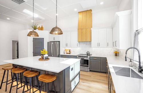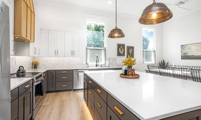 -Large, gourmet kitchen; large island, walk-in pantry, convection oven and induction cooktop; baking and cooking essentials and more; excellent for entertaining