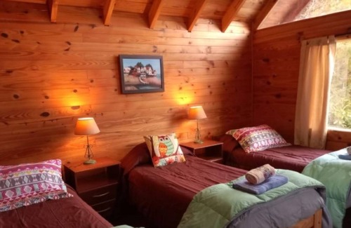 En la planta altaencontramos 3 (tres) dormitorios. La habitación principal tiene cama matrimonial con vista alas montañas y salida a un balcón. El segundo dormitorio cuenta con 3 camas individuales mientras que el tercero cuenta con una cama litera, completando asi el espacio comodo para 7 pax. En la planta alta hay un baño completo con bañera en tanto que en la planta baja se encuentra otro baño sin ducha.En todos los ambientes hay calefacción por caldera y radiadores, y ventanales con vista al parque y las montañas.