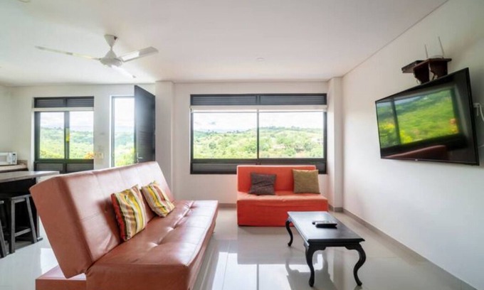 Nestled in Anapoima, this 2-bedroom, 2-bathroom vacation home brings it all within your reach. Fans of nature and the outdoors will love being 19 minutes by car from Apulo Municipal Pool and 8 minutes from Liberia Park. Tackle the 29-minute drive to AgroPark Mutis UNIMINUTO or the 26-minute drive to Makute Park.