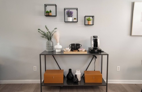 Perfect for traveling professionals, as well as other travelers, this tastefully decorated, modern, 2-story townhome is a hidden gem located in a working class, quiet neighborhood. From here, all the major attractions are a short car ride away, with quick access to major roads like NC540, US-1 (Capital Blvd) and NC440 (The Beltline). There are 2 dedicated parking spaces directly in front of the house. The kitchen is stocked with all the necessary pots, pans, plates, cups, etc to enjoy a home cooked meal. If you prefer to order in, the delivery drivers will have no problem finding this address. The living room has cozy furniture and a 65” Smart TV. The bedrooms feature comfortable beds and 50” Smart TVs.