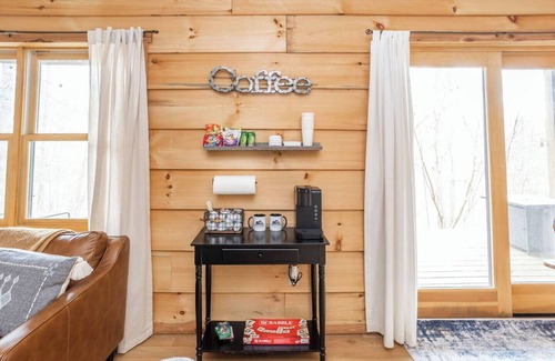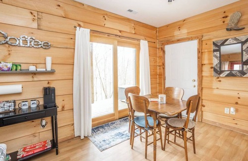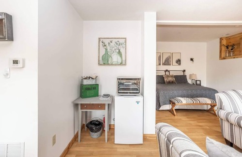 Sitting on almost 6 acres of woods and surrounded by State Parks, you will love this relaxing, quiet get away. Large outdoor deck with seating. Shared access to a fire-pit, grilling area, and an old fashioned sauna with wood stove. The suite features an open concept with living room area, bedroom area, dining area and bathroom. A mini refrigerator, microwave, and Keurig are provided. There is a king bed, a sofa with pull out bed and living room with smart tv. All linens are provided, as well as other essentials.