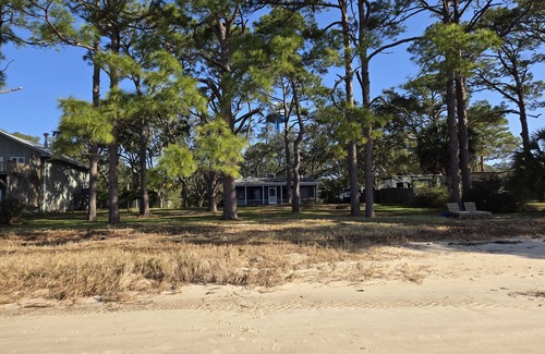 Take it easy at this Ochockonee bay-waterfront cottage getaway. Sits on a beautiful 1/2 acre wooded lot with old Florida charm. This home has been updated and has a very cozy interior. Do some fishing with 100ft of saltwater or just put your toes in the sand on your own beach in the backyard. Relax with those that matter the most. Boat ramp 5 mins away. There is room to park your boat or RV. Amazing sunsets from the porch over the water is a must see. 10mins to bald point Beach for best sunrise you can ask for.