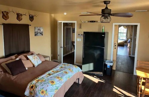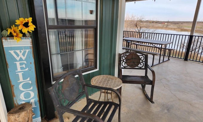 Come rest at The Hideaway after a self guided tour of Main Street, a day out at Possum Kingdom Lake, or a quick shut eye before a fishing tournament at Hubbard Creek Lake. This barndominium has everything you need to get away and relax for a while. You'll love this unique escape! Catch and release farm tank, beautiful sun rise & sun sets, and additional pens that you can stall your horses for horseback riding on the ranch. Bring your 4 wheeler or just come to relax and be romantic!