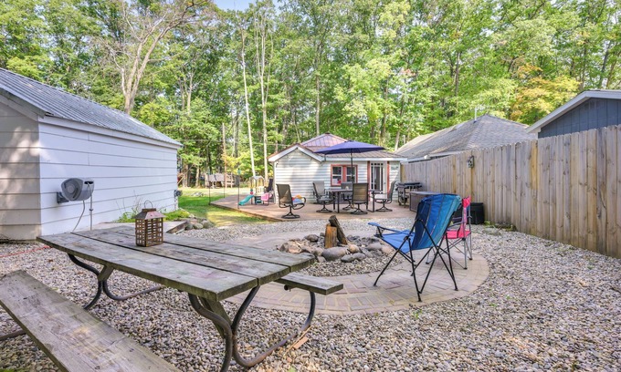 Enjoy days on the water and cozy nights by the fire at this Roscommon vacation rental! Just a stroll from Higgins Lake, this 1-bedroom, 1-bath cabin is ready for family adventures — with your pets in tow! Kayak on the lake, fire up the grill for dinner, and challenge the crew to a game of cornhole. Whether you're embracing lake life or relaxing in Michigan's natural beauty, this spot has all the makings of a fun-filled getaway.