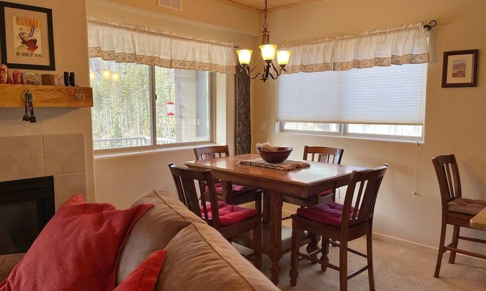 This splendid spot on Taos' 'Backside' near lift 4 gives you 2 bedrooms and 2 full bathrooms, a full size kitchen with all new appliances, and high ceilings with picture windows over dining and living areas. This condo has easy access to the Bavarian restaurant and Kachina Basin retail as well as the backside operations base, Williams Lake and Wheeler Peak trailhead access, and Taos Ski Valley's Lift 4 andRubezahl return trail for ski access to the main base area (Pro Tip: if you take Rubezahl down to the base at lift 1 from lift 4 you can't get back up to the condo on skis after the lifts stop for the day - you'll need a ride). This property sits above 10,000 feet in altitude and 4wd/AWD are a must for getting to and from the condo, but you can walk to the lifts if you're not shy about a little hike down the (fairly flat) road. 100M Internet, Smart Roku TV with Dish Network connection and DVD playermake audio visual entertainment easy.