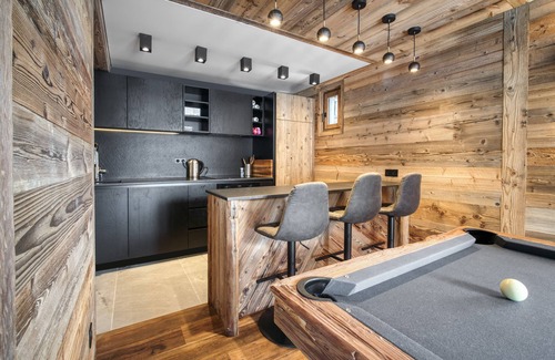 The chalet has a large living room with fireplace and billiards and a dining room that can accommodate more than 20 people. Children can enjoy a mezzanine play area.
