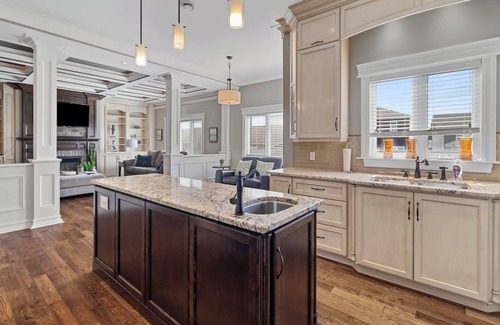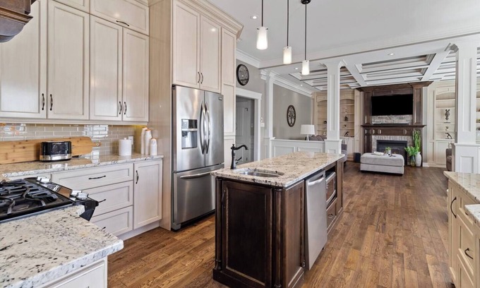 The house has multiple living areas so everyone can have their own space to enjoy. There are three indoor places throughout the house for cozy nights in. Labrador granite countertops and impressive finishes throughout.
