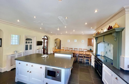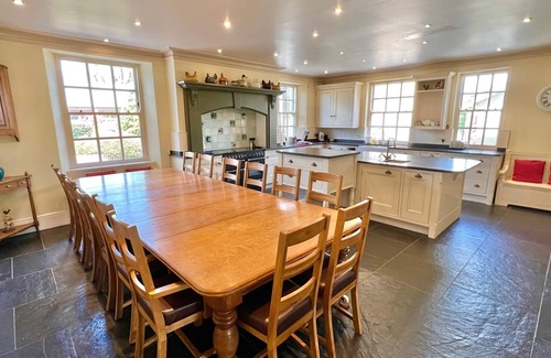 The house, built in 1845, features 5 reception rooms, 7 bedrooms with 5 en-suites spread over 6,500sqft. It comfortably sleeps 16 people in 1 Eastern super king (2mx2m), 4 super kings (2mx1.8m), 2 doubles (1.4mx1.8m) and 4 singles (1mx1.8m). The property is heated from the environmentally friendly wood pellet biomass heating ensuring a warm stay whatever the time of year. This is further supplemented by 2 log burners to really set the mood on a wintry night.