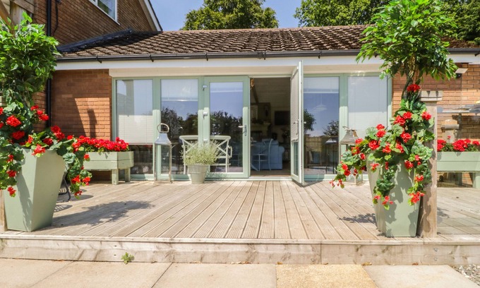 Amenities: All ground floor. Two bedrooms: 1 x king-size with roll-top bath and en-suite shower, basin and WC, 1 x king-size with en-suite shower, basin and WC. Utility with washing machine and tumble dryer. Open plan sitting room, kitchen and dining area with wood burner. Amenities. Kettle, toaster, hob, electric oven, microwave, fridge/freezer, washing machine, tumble dryer, dishwasher, Tassimo coffee machine & hair dryer. Electric wall heaters and wood-burning stove. WiFi. Smart TV in all rooms. Fuel and power plus starter basket of logs inc. in rent. Bed linen, towels and dressing gowns inc. in rent. Selection of books and games. Off-road parking for 2 cars. Private sheltered hot tub and seating area. Private patio with furniture. Small charcoal BBQ. Shared access of front lawned garden Countryside and lake view. No Pets. No Smoking No facilities for charging electric vehicles. DVD player on request. Travel cot and highchair on request. Sorry, no pets and no smoking. Shop 3 miles and pub 1 mile. Food hamper available at an extra cost by prior arrangement. Check-in 3pm/Check-out 10am. Please note: Small step to decking