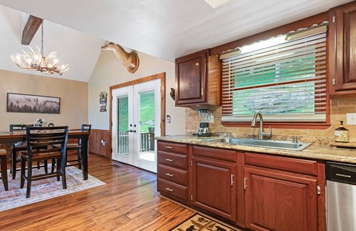 WELCOME TO MAGGIE VALLEY! This one-level cabin sits just above the Maggie Valley Fairgrounds and is close to the Blue Ridge Parkway, the Smoky Mountains, Soco Falls, Cataloochee Ranch, and Lake Junaluska. We love the short- and long-range mountains views off the front deck, the sounds of the rushing water flowing from the water wheel alongside the porch, the glimpses of the area wild goats, elk, fox, bears & groundhogs, the summer hummingbirds and fireflies, as well as the close proximity to area conveniences. We hope you create bountiful memories at our cabin.