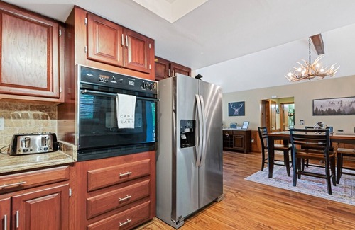 INDOOR LIVING: One-level cabin, wood-burning fireplace, 60" SmartTV, 55" SmartTV's in each bedroom