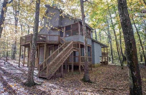 Wintergreen mountain house located yards from the Blue Ridge Parkway and Appalachian Trail! Whether you are skiing in the winter or hiking, fishing, antiquing, visiting orchards, or exploring wineries/breweries the rest of the year, you will never get bored! The house is 3 stories with several porches, 3 of them are private. The lighted circular driveway is convenient for guest to have plenty of room to park. The top floor has 2 bedrooms and one large bathroom and a balcony overlooking the den. The main living area is on the second floor including a master bedroom, and on the bottom floor another master bedroom, and additional “bunk room.” With a 10 seat kitchen table you will find family gatherings very accommodating. After a long day enjoying the outdoors, relax by the den fireplace!