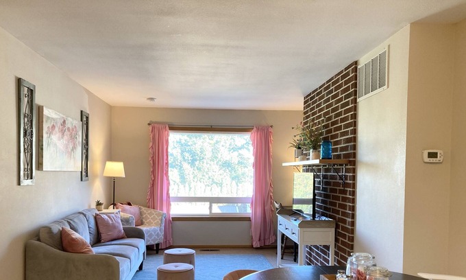 One bedroom, 1 bath apartment in Prosser thoughtfully appointed to ensure you have a comfortable stay! Thirty wineries in or just outside of town and many more within an hour’s drive! Enjoy a private entrance, full kitchen, cozy living area, full bathroom with washer and dryer, and large bedroom with double closets. Features a large balcony with a wide view of the valley. Smart TV includes all of your favorite streaming apps. Please be aware there are stairs to climb as well as an incline from the street. Free street parking.