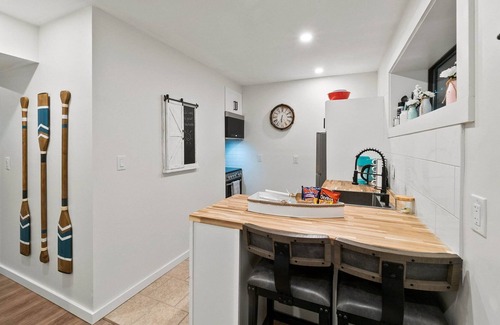 The day before check-in you will receive a welcome message explaining how to access your suite including a unique passcode. Please park on the right side of the driveway. Two vehicles can fit.