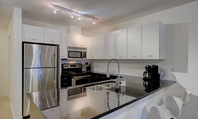 This is the perfect condo for those looking to take a longer vacation in Kelowna! Enjoy this professionally decorated modern condo for a month or more. Centrally located in Glenmore, this suite has two separate bedrooms, an office space, and access to the pool, all within walks of Starbucks across the street!
