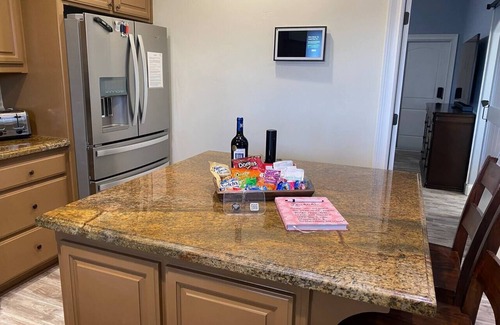 The whole house is yours - kitchen, living room with queen sleeper/sofa, 2 bedrooms (1 CK bed, 1 queen), 2 bathrooms with showers, towel warmers, and bidet toilets; front patio/dining area, enclosed rear yard with hot tub and grass area. Ceiling fans with light fixtures and remotes in bedrooms and living room. Washer and dryer in garage. Beach chairs, boogie boards, beach umbrella, ice chest, and beach wagon. Indoor and outdoor games, ping-pong table. High chair, play-yard/crib, toddler plates/cups/silverware.